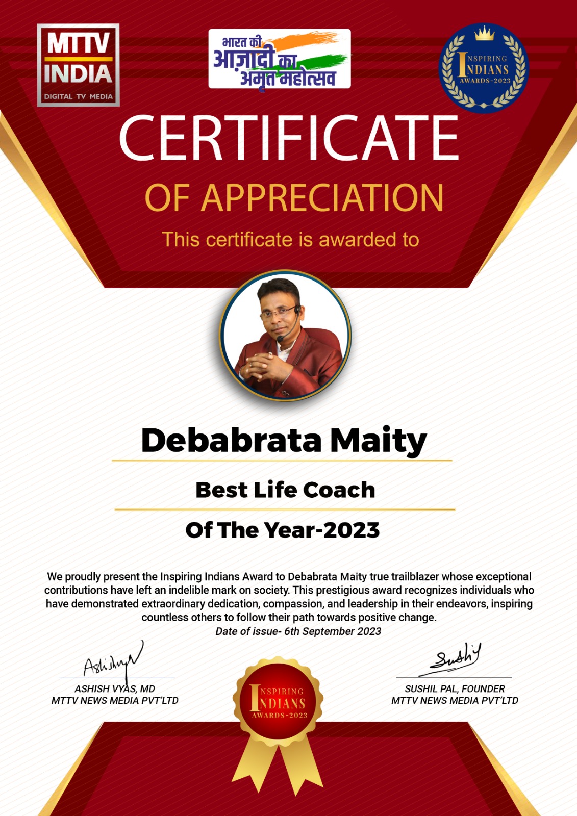 Debabrata Maity is a seasoned life coach and renowned author who has inspired people to alter their lives for ten years. Debabrata has established an excellent track record of inspiring and bringing about good change in over 10,000 individuals, making it a beacon of inspiration. His perceptive coaching techniques and knowledge-filled writings have profoundly transformed the hearts and minds of innumerable people. Debabrata Maity, who has a passion for inspiring others to realise their full potential, is still a go-to person for advice and inspiration in the quest for a happier, more fulfilled life.